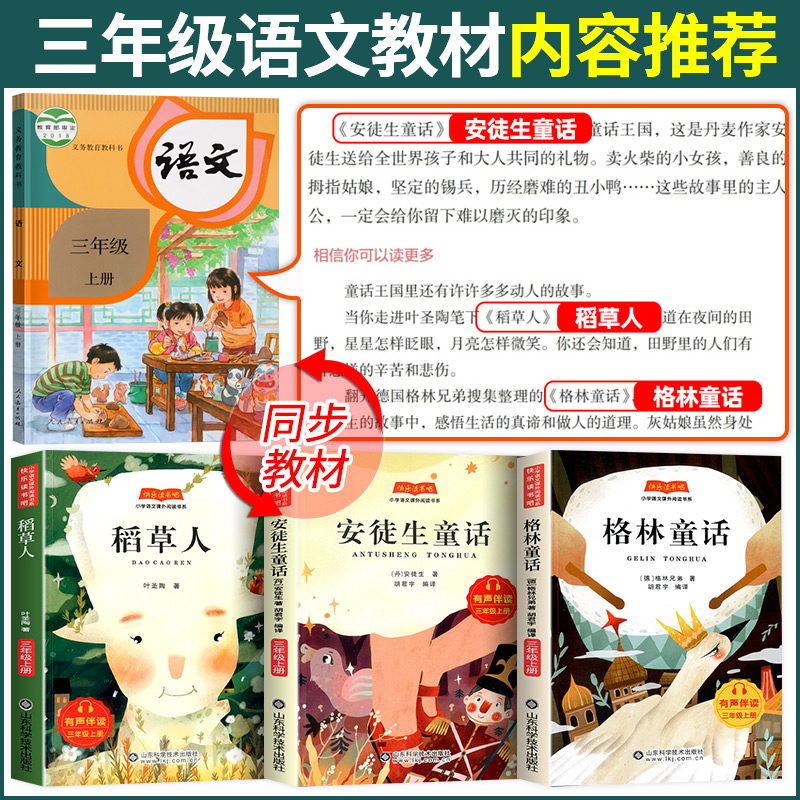 小学生书籍人教版 全套3册 格林童话安徒生童话故事全集快乐读书吧三上阅读书目老师推荐 课外书叶圣陶正版 稻草人三年级上册必读