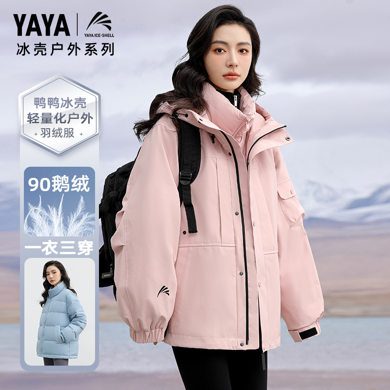 王一博同款 鸭鸭冰壳三合一冲锋衣羽绒服男女加厚户外登山情侣外套