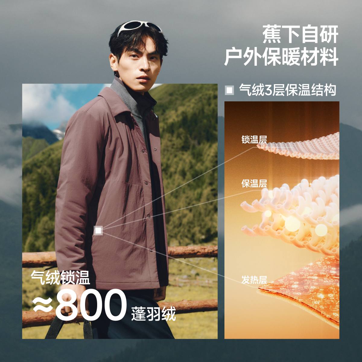 蕉下立领气绒服男款 户外保暖棉衣羽绒服内胆抗菌耐脏外套防风棉服