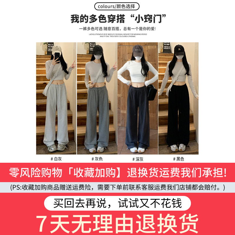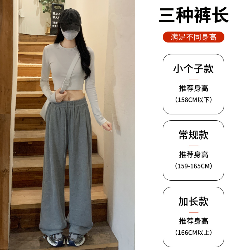 高腰小个子休闲秋冬加绒阔腿卫裤 灰色直筒运动裤 女春秋2025年新款