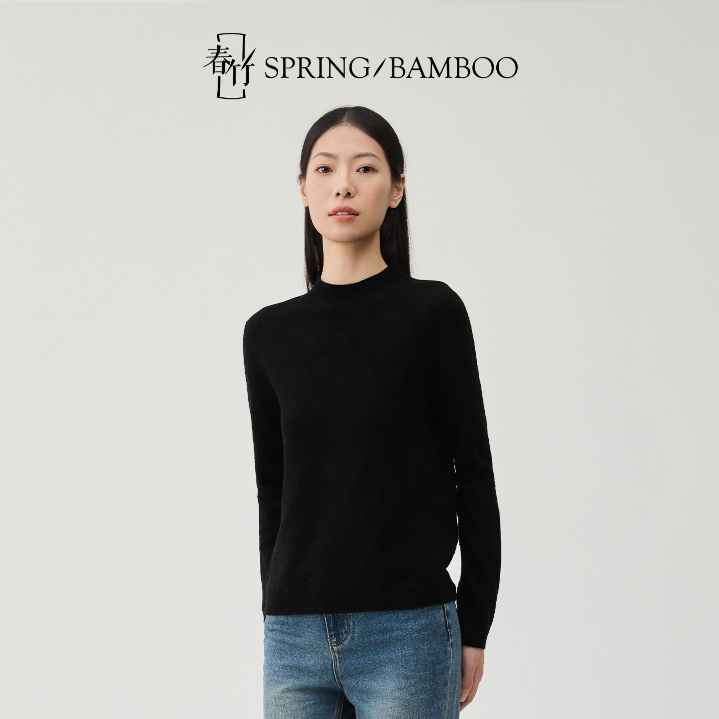 女士羊毛衫 长袖 2025秋冬新款 春竹100%绵羊毛半高领显瘦百搭打底衫