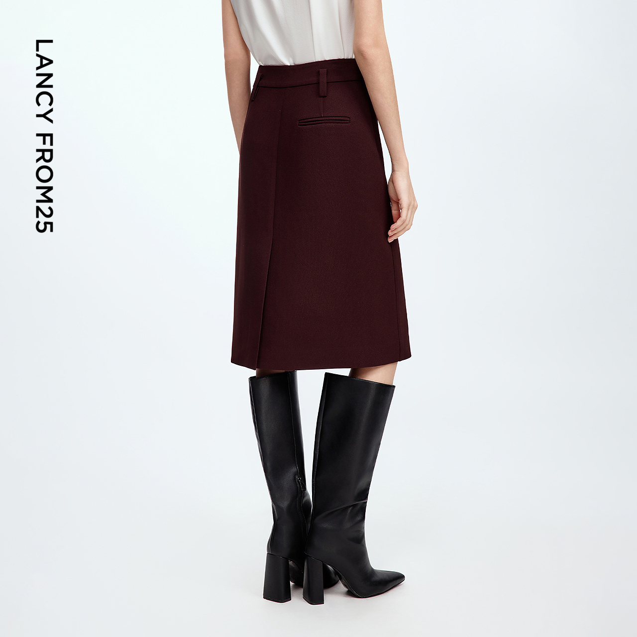 新款 朗姿直筒复古风黑色西装 半身裙高级感气质通勤半裙2025年秋季