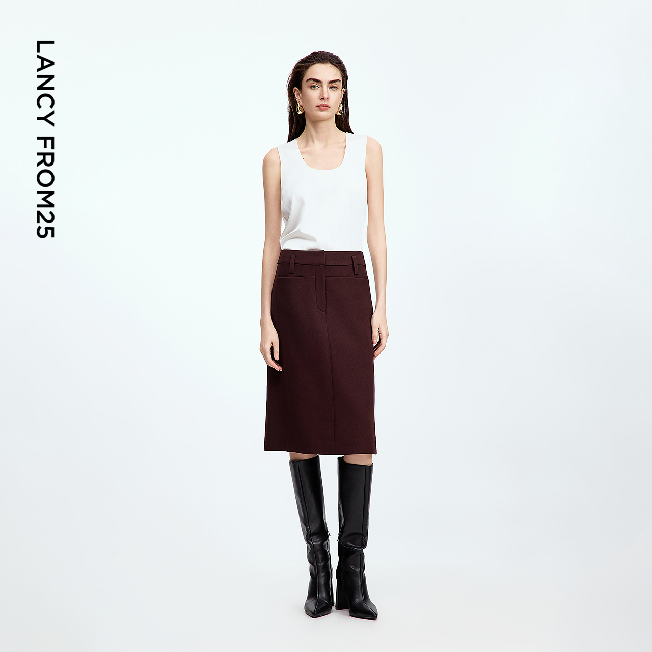 轻熟法式 Moda半身裙女25秋新款 Vero 风棕色中裙325316021 热卖