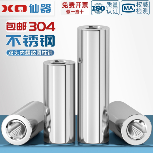 304不锈钢内螺纹圆头圆柱销空心销内牙带孔销子定位销M4M5M6M8M10