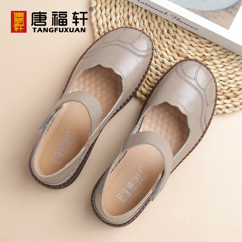 秋季 休闲鞋 新皮鞋 中老年人单鞋 平底 软底牛皮舒适妈妈鞋 唐福轩女鞋