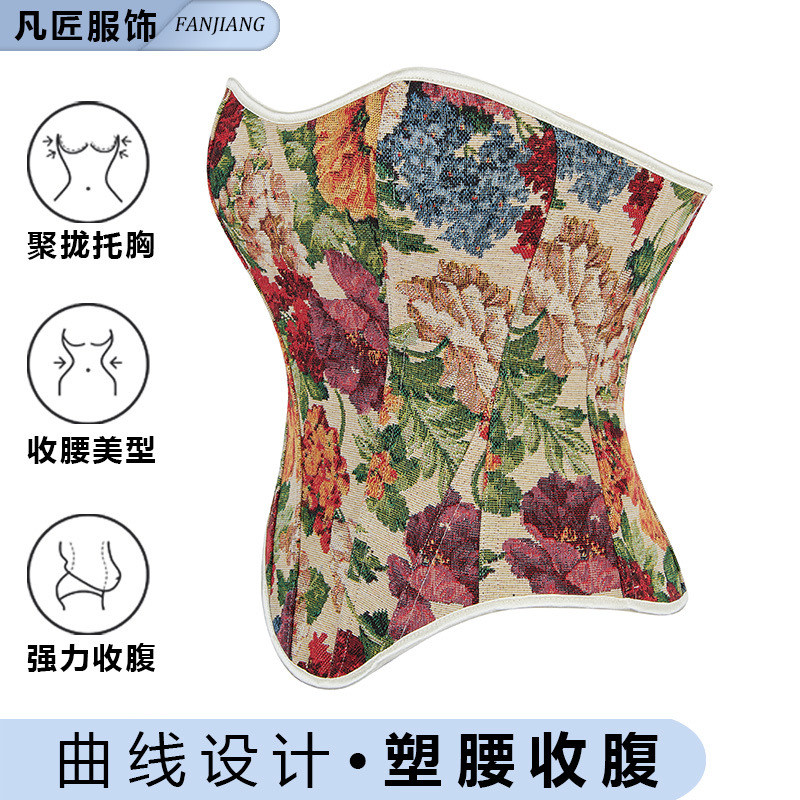 外穿塑身衣 宫廷紧身胸衣Corset虞花朵抹胸后系带法式 春季 新款