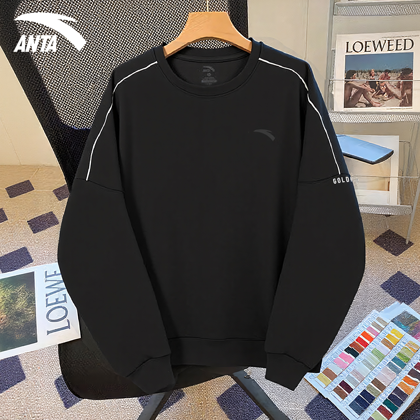 T恤青少年休闲宽松运动服 长袖 安踏卫衣男2025秋冬新款 圆领套头衫
