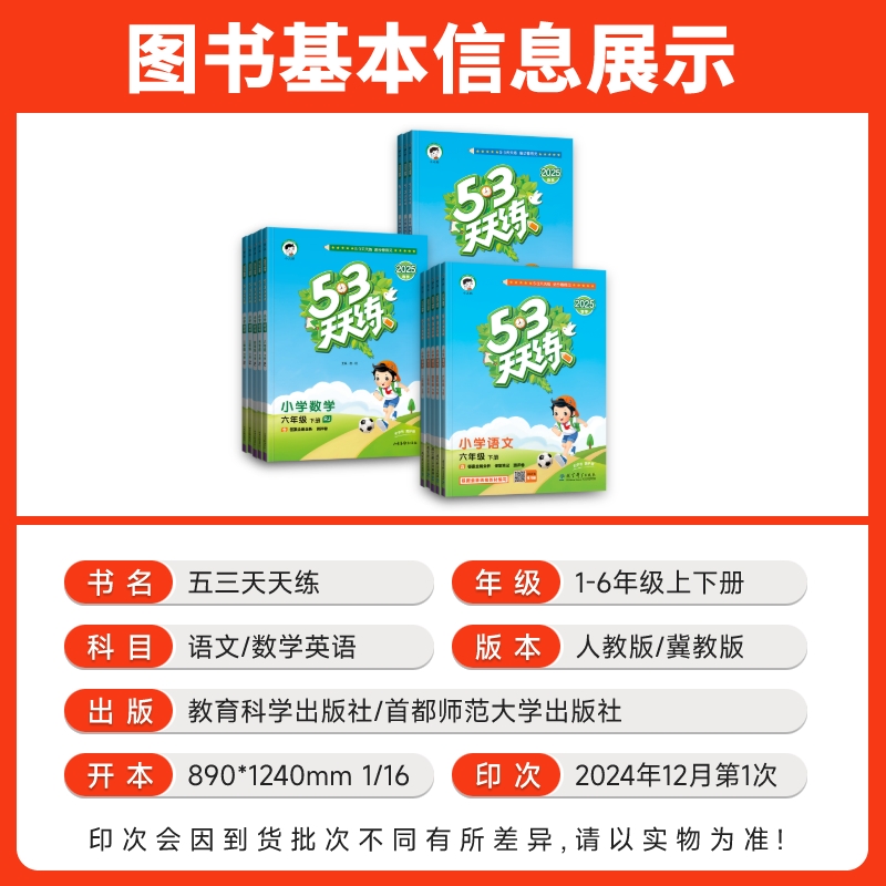 冀教版 2025新版 苏教版 北师版 课五三天天练专项测试同步训练yc 53天天练一二年级三四五六年级上册下册语文数学英语全套人教版