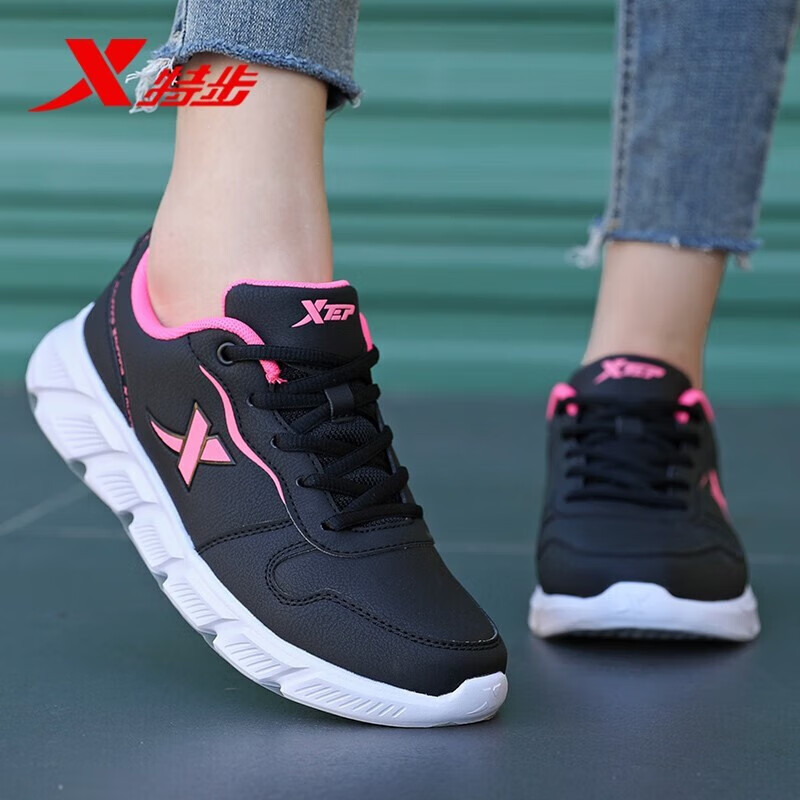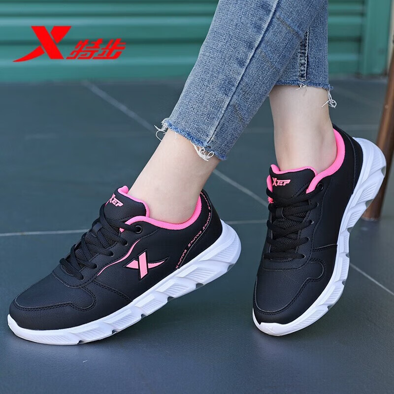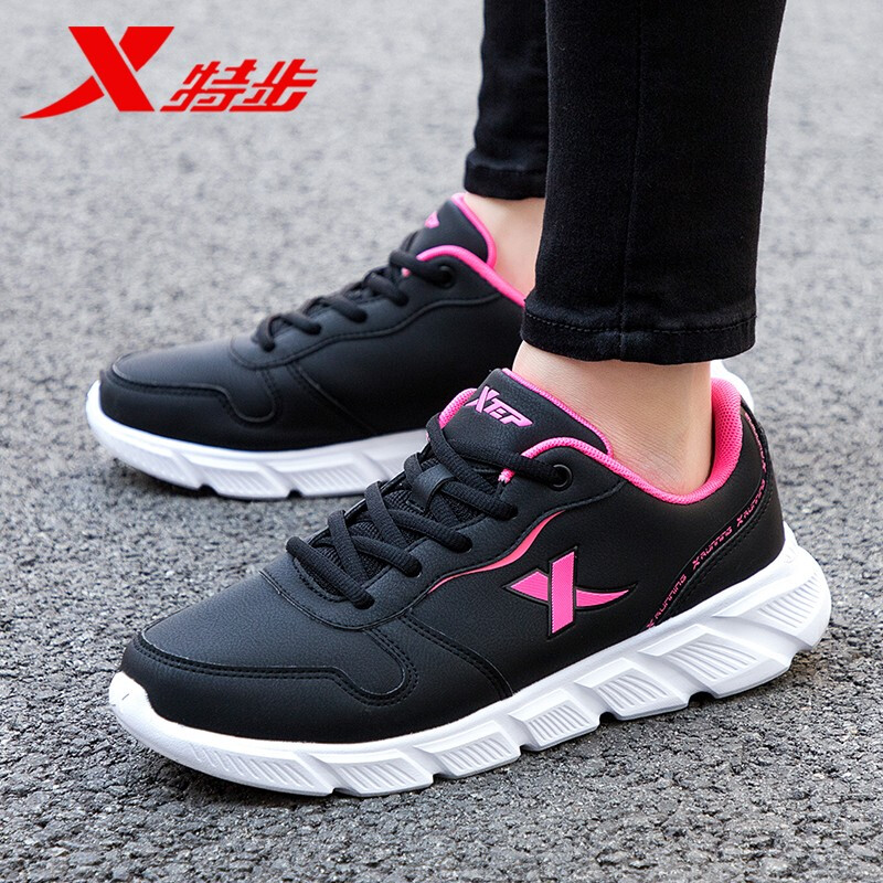 新款 鞋 子轻便皮面鞋 特步女鞋 休闲运动鞋 秋季 官方旗舰正品 女 跑步鞋