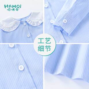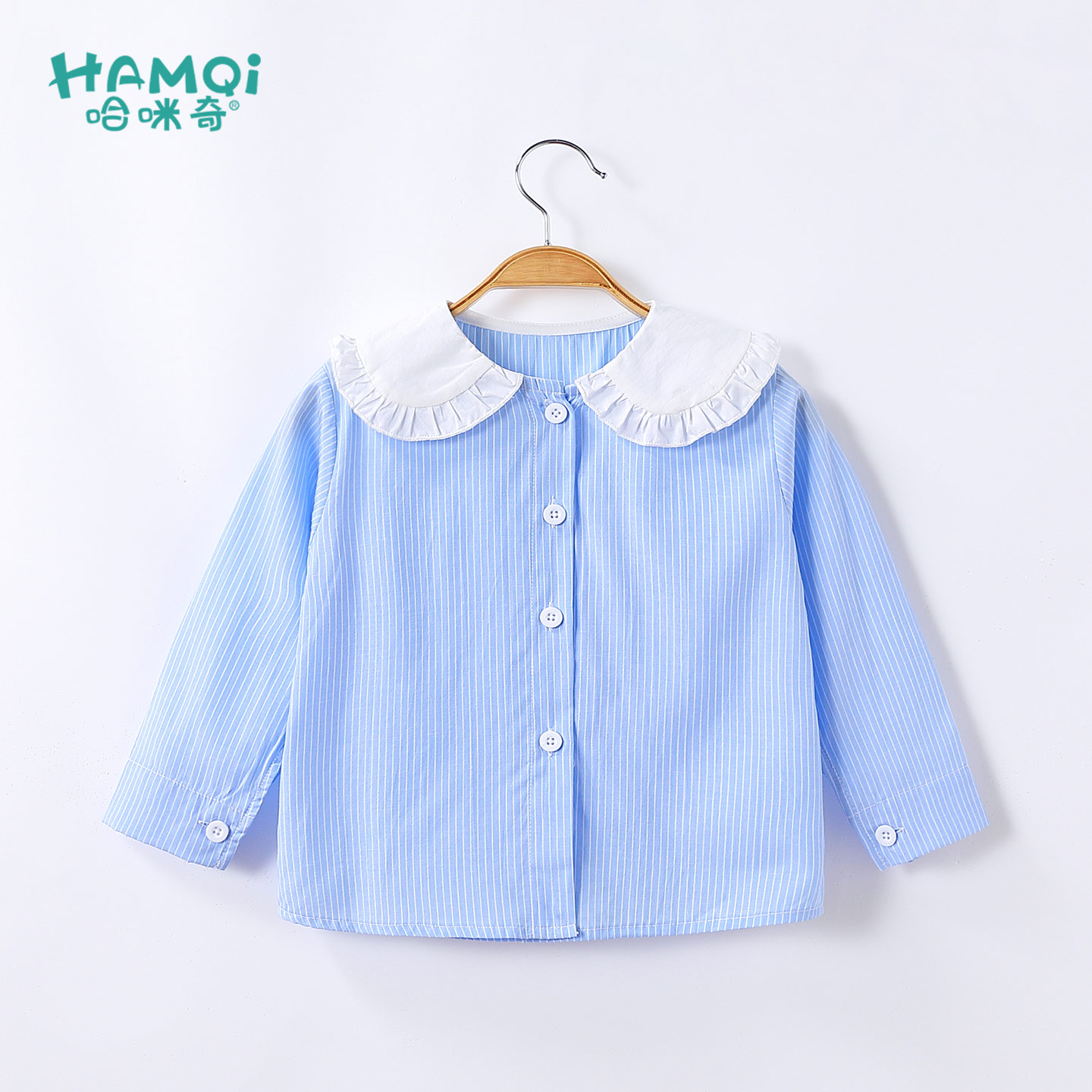 衬衫 童装 春秋季 宝宝新款 上衣潮 洋气条纹衬衣小儿童娃娃衫 女童长袖
