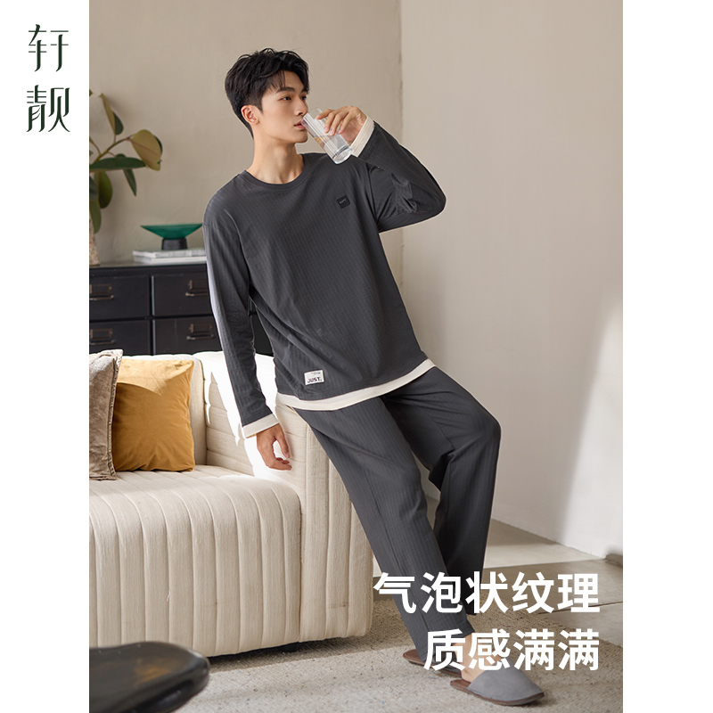 家居服套装 轩靓泡泡棉情侣睡衣女春秋季 男士 休闲简约大码 纯棉长袖