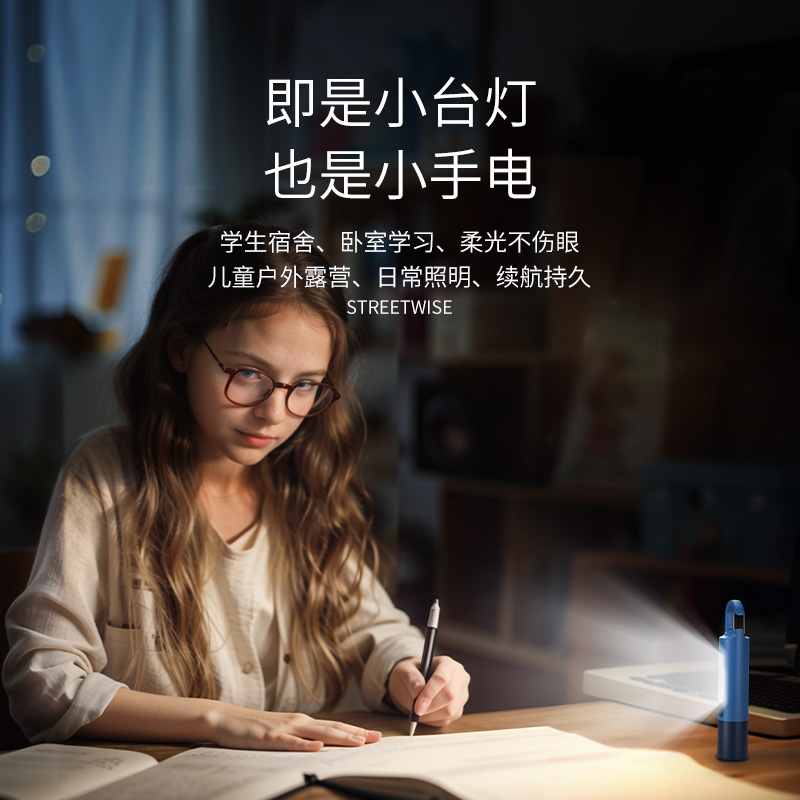 微笑鲨学生专用手电筒小型便携儿童宿舍护眼看书不伤眼长续航充电