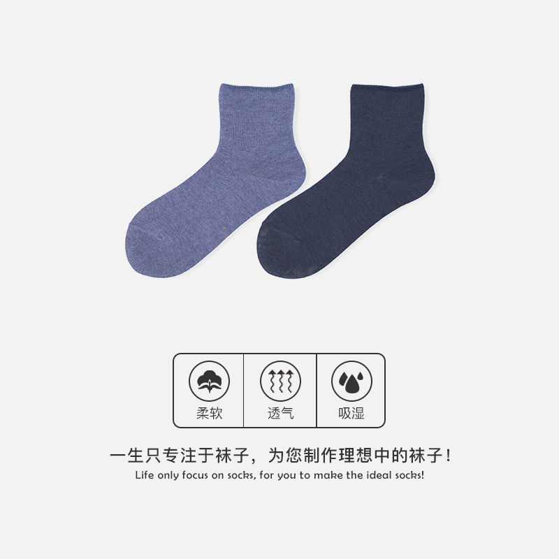 Tabio袜子女秋冬透气吸湿日系百搭纯色女士短筒袜黑白色中筒短袜