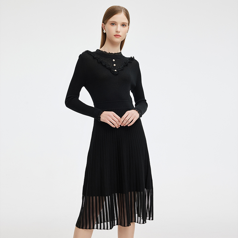 黑色针织连衣裙气质长裙MRA410SWX0 秋冬新款 专柜正品 马天奴女装
