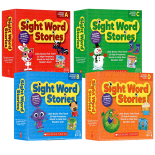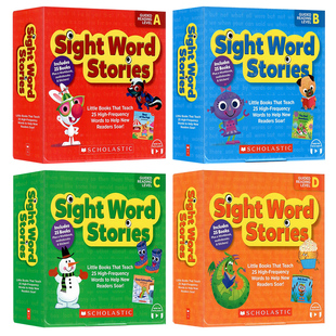 Word Stories 绘本扫码 4盒英文原版 听音频 25则高频词故事合集附贴纸家长手册儿童益智盒装 Sight ABCD 学乐高频词级别ABCD Level