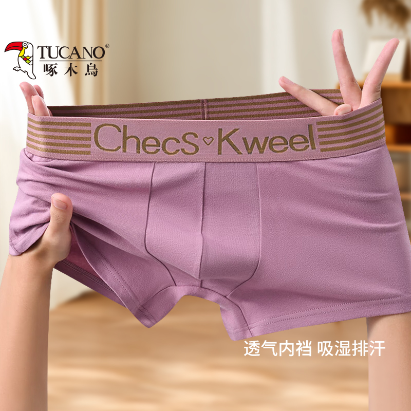 内裤 男生四角短裤 纯棉全棉男款 透气大码 抗菌档平角裤 啄木鸟男士