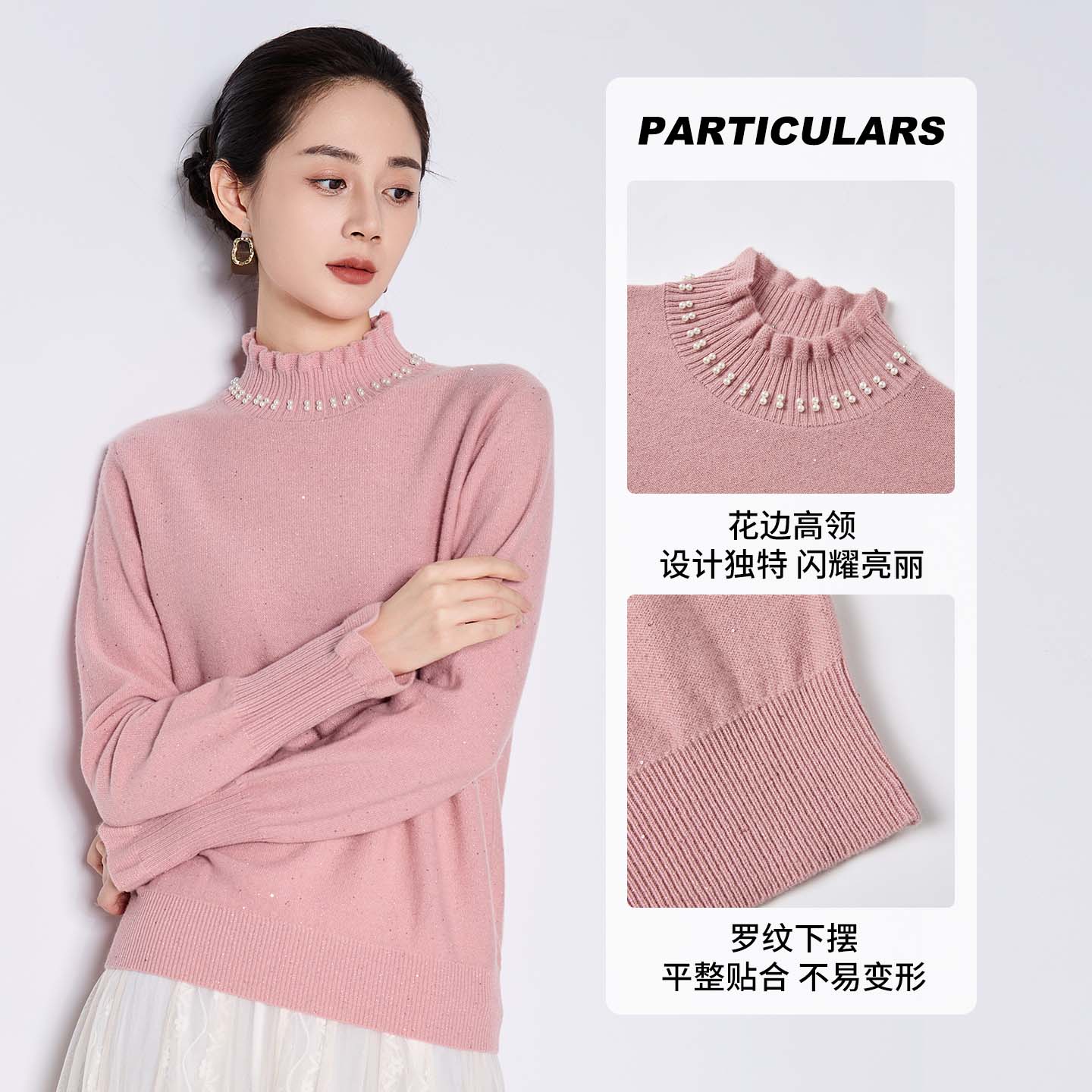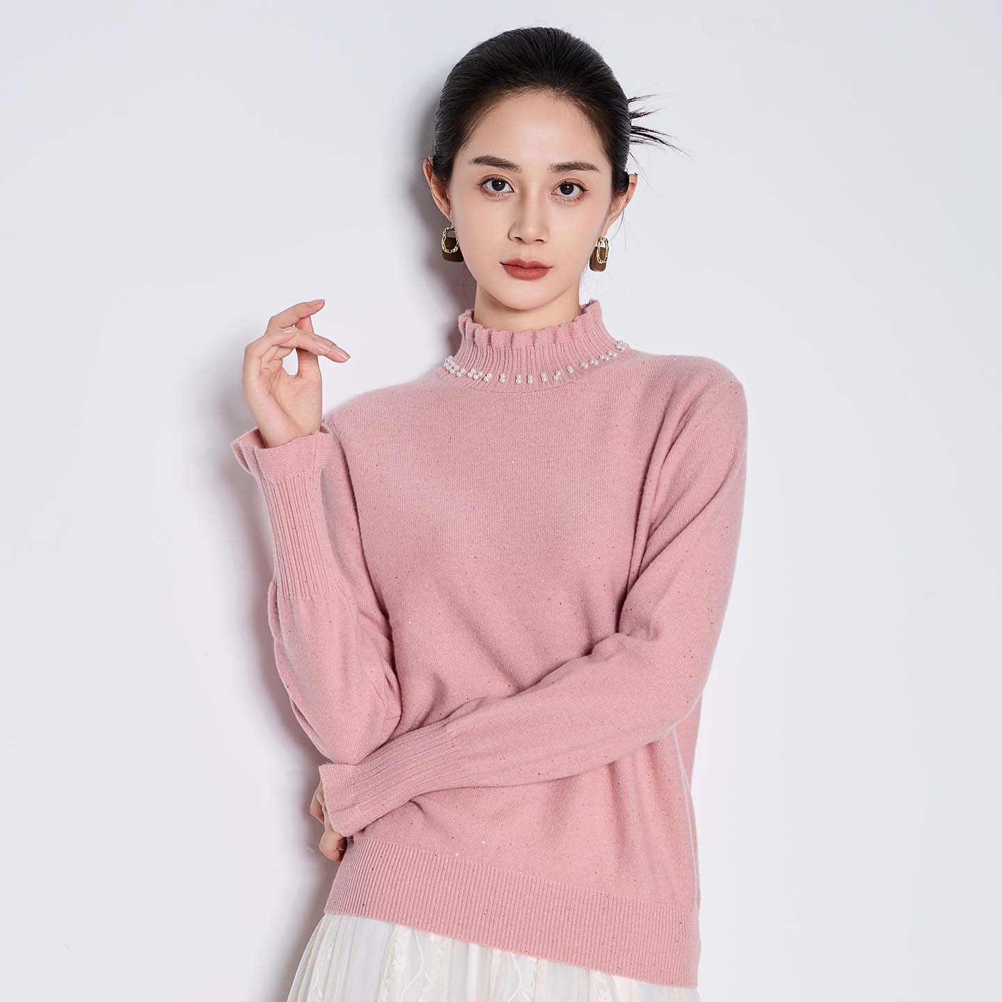 粉色套头打底毛衣女百搭上衣 针织衫 马天奴2025秋冬新款 绵羊毛长袖