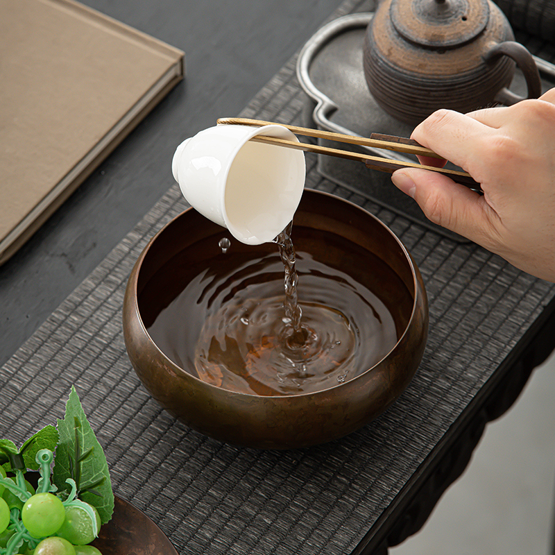 2025新款 纯铜茶洗茶渣缸家用高档复古水洗杯洗水盂功夫茶道零配件