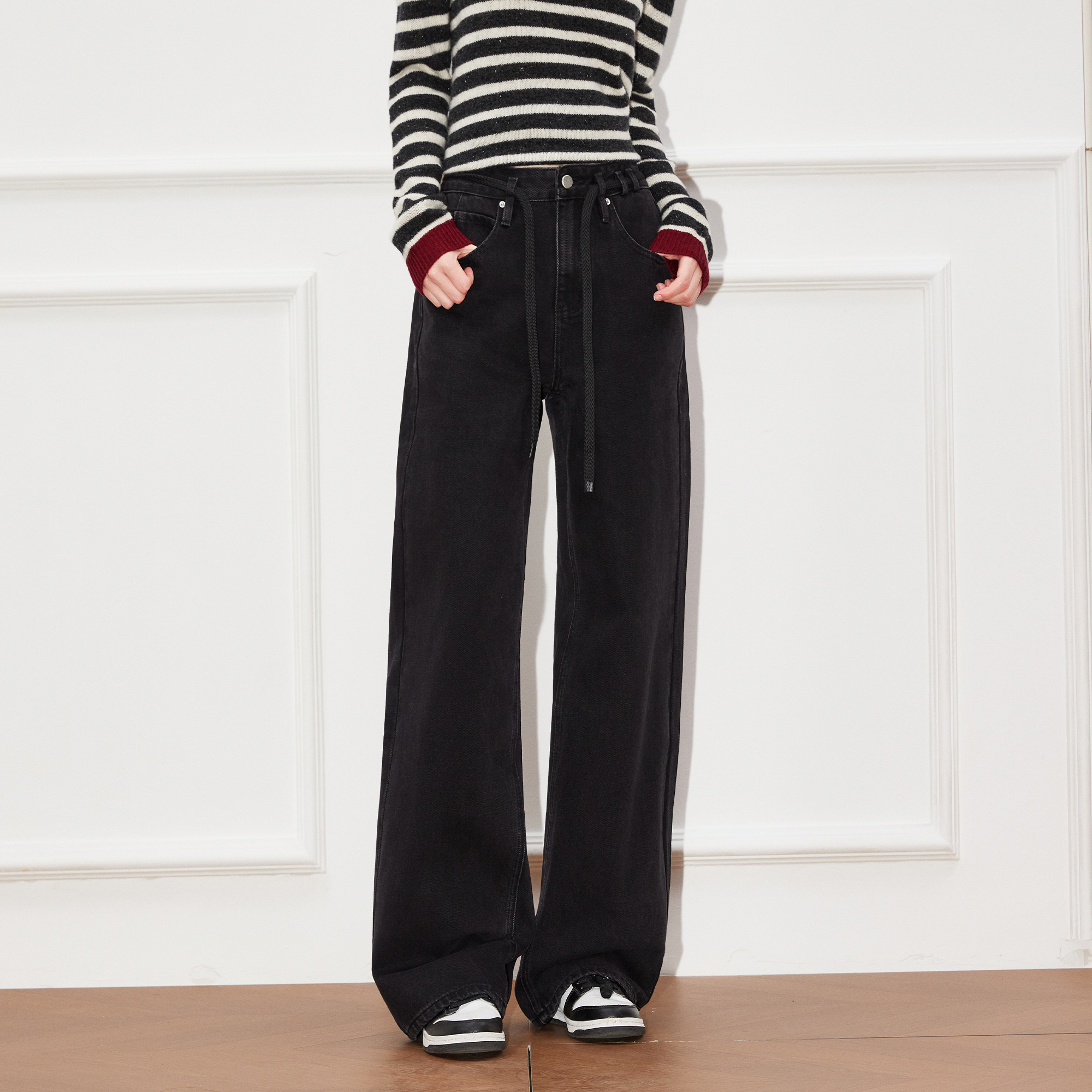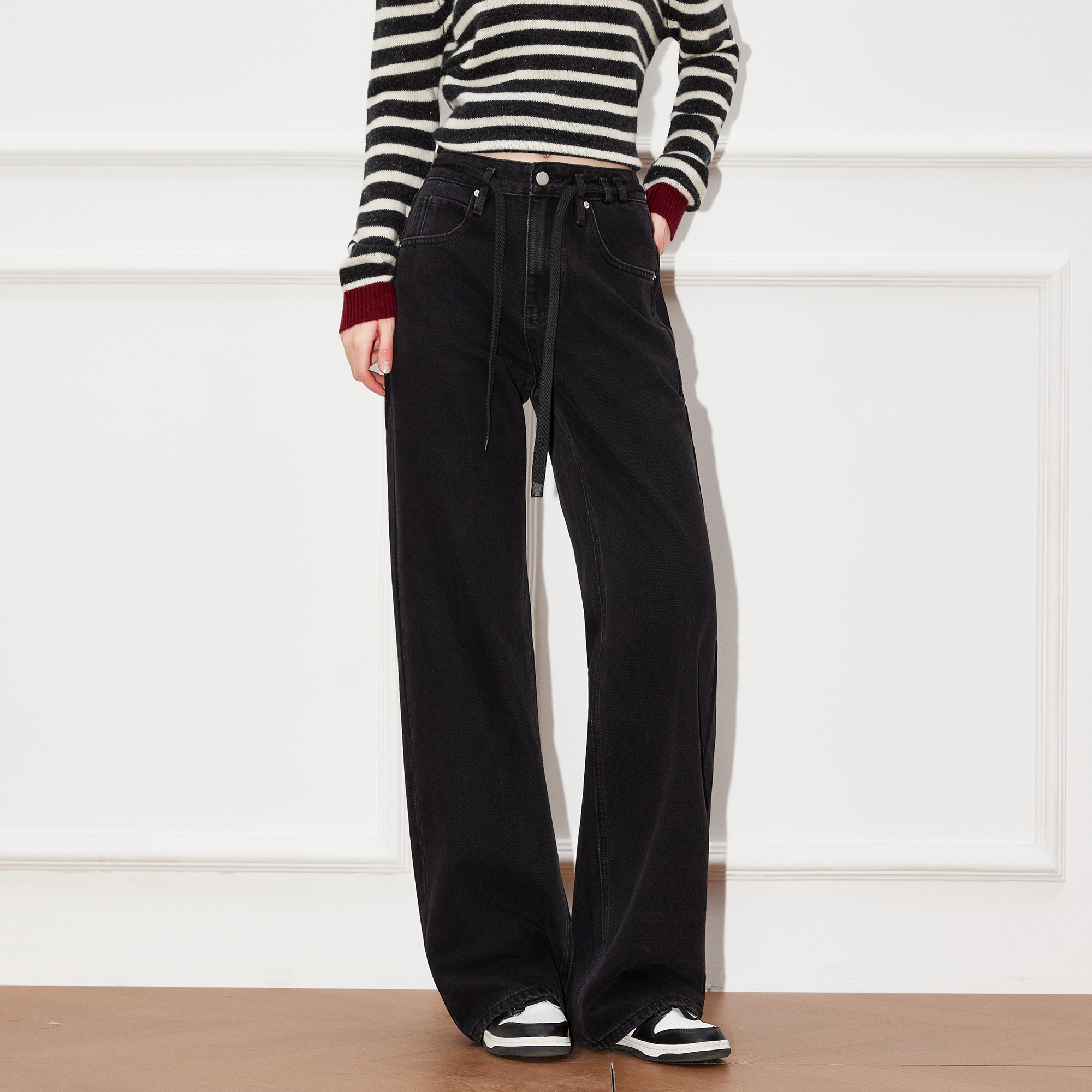 House 宽松显瘦长裤 百家好黑色高腰牛仔裤 新款 子 女2025秋季 Basic