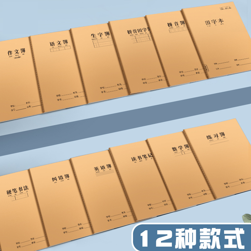 b5田字作业本小学生语文数学牛皮生字英语作文簿拼音本练习本二三四五六年级本子初中生统一加厚大号汉语学校