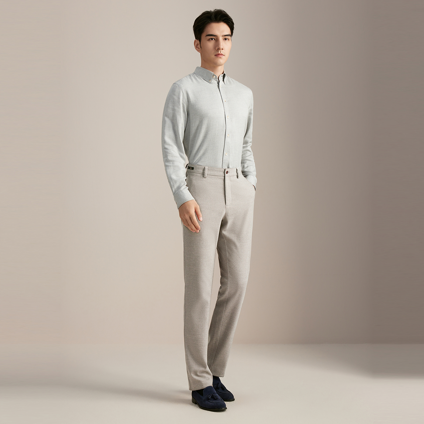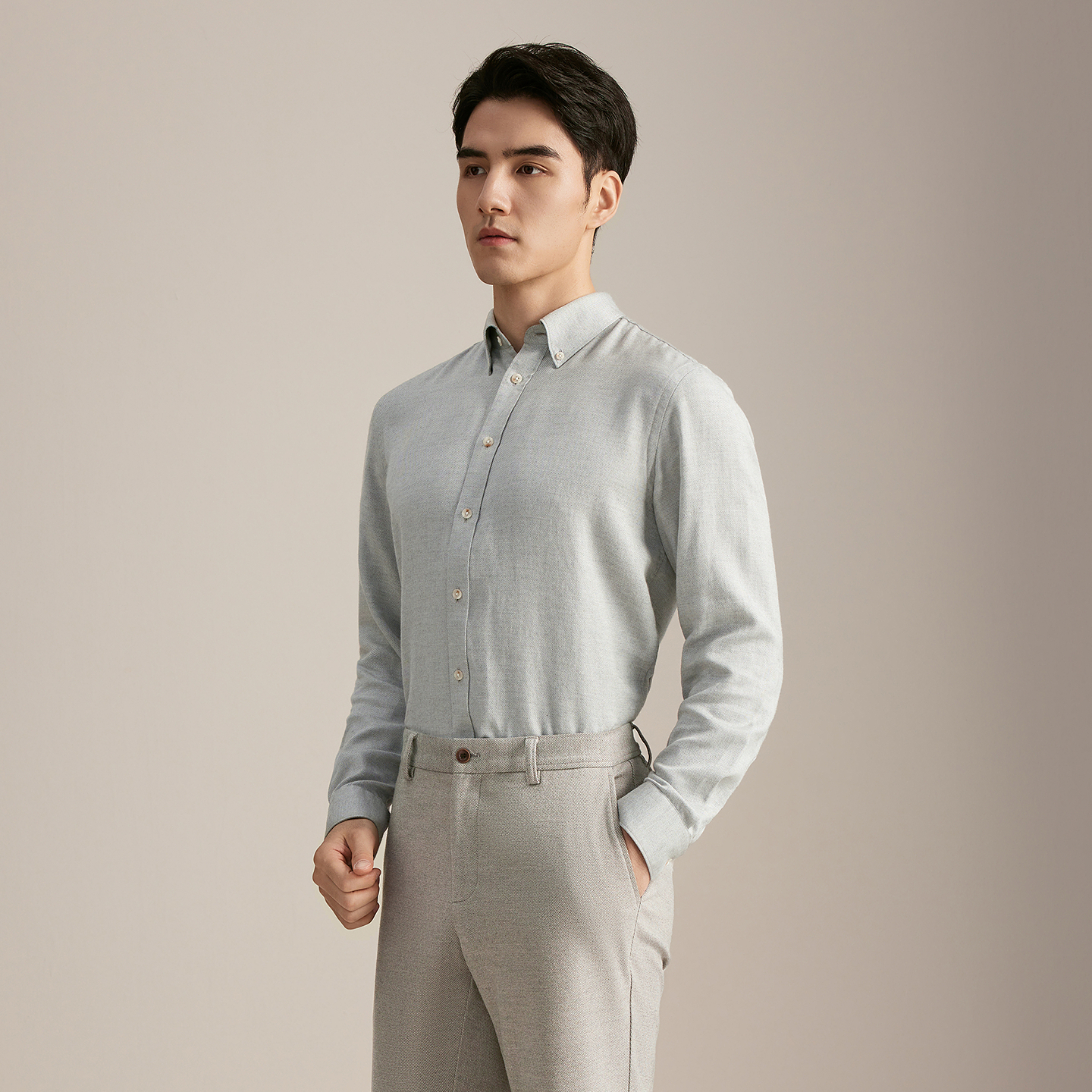 休闲中年内搭 纯色百搭莫代尔棉衬衣男装 轻奢高级感磨毛衬衫 男长袖
