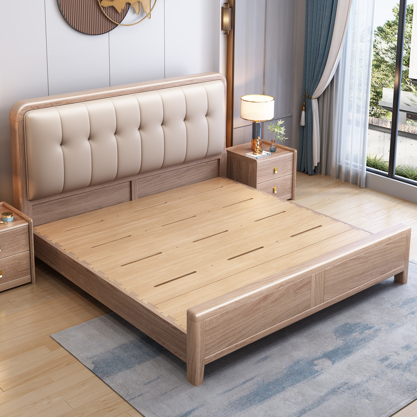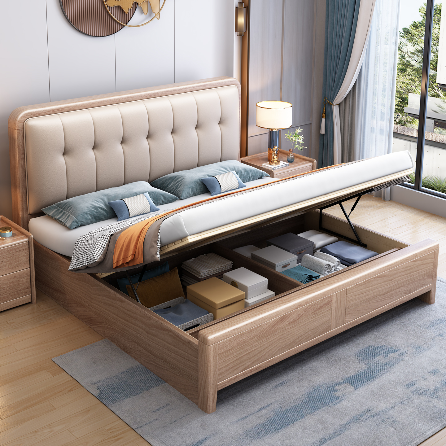 简约现代实木床1.8米主卧室双人床满铺榫卯板气压抽屉储物1.5m床