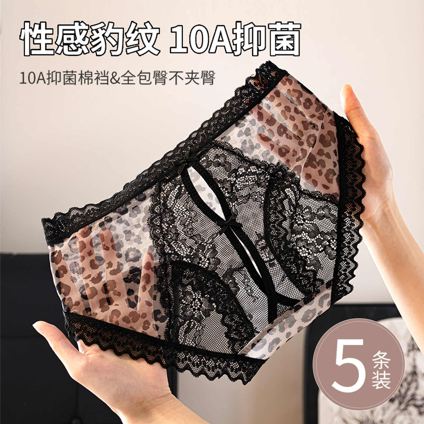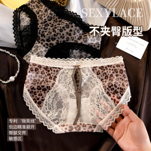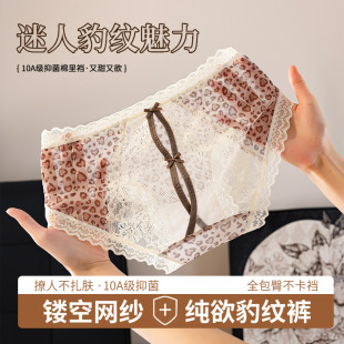 俞兆林豹纹网纱镂空蕾丝女内裤 半透性感热辣纯欲少女全棉裆三角裤