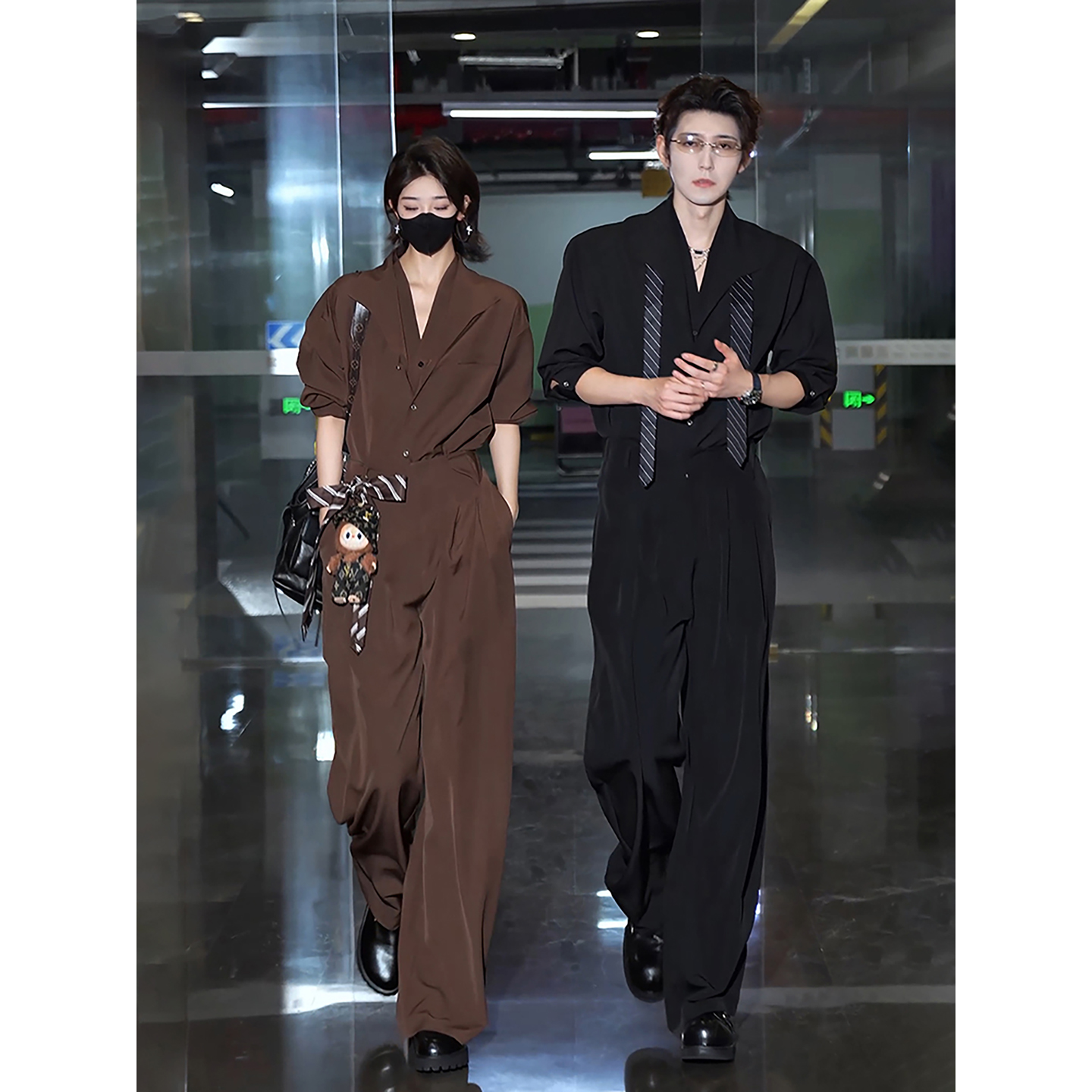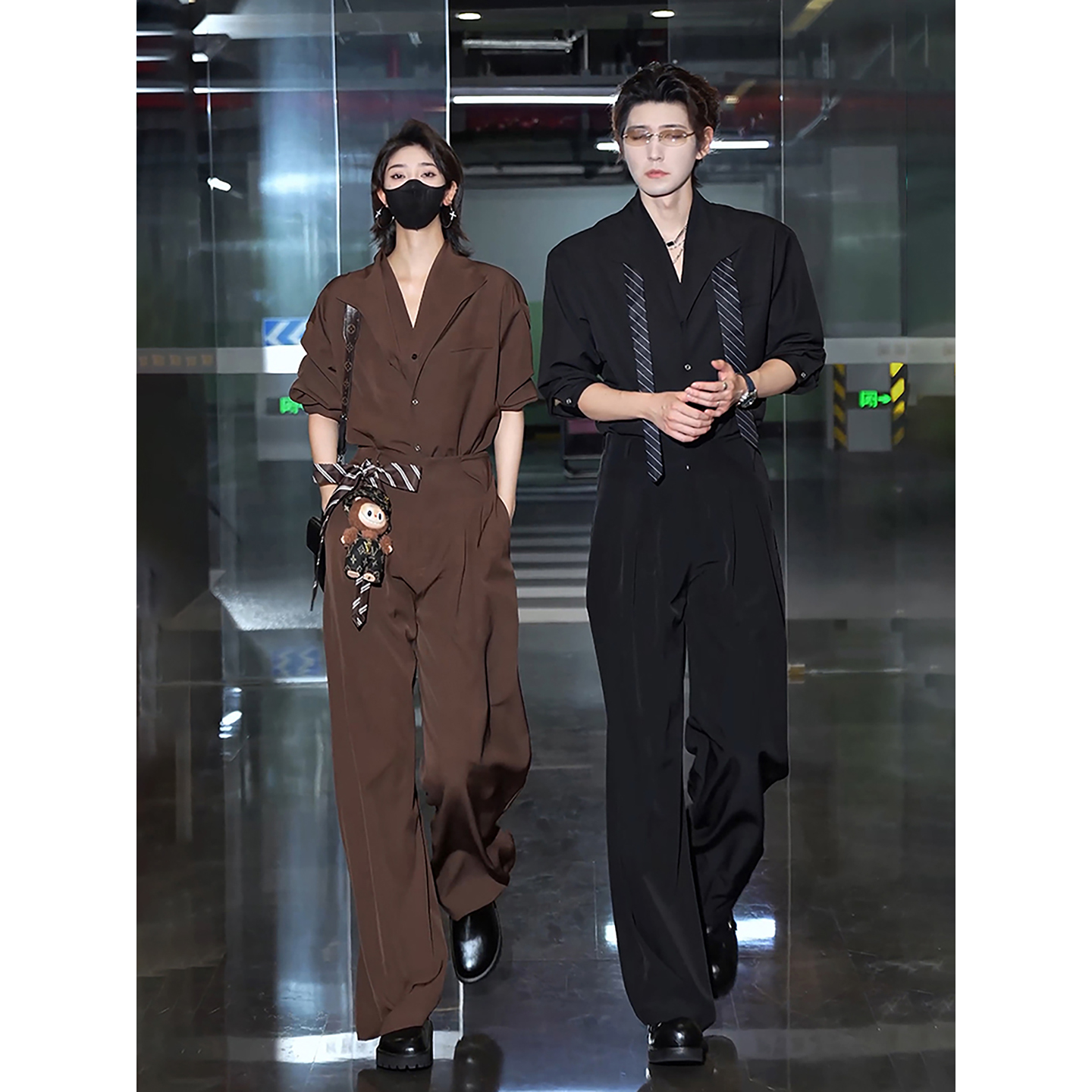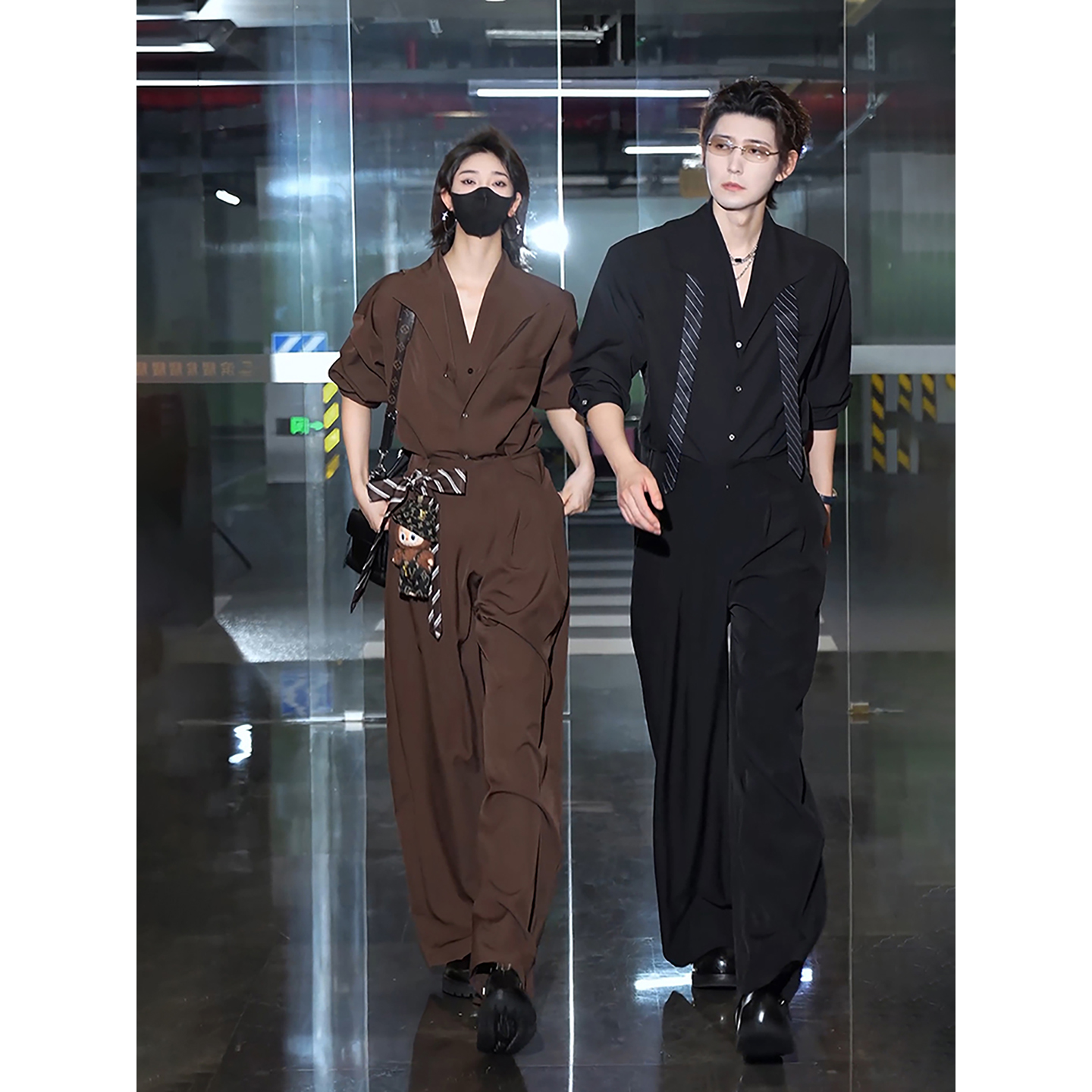 搭配一整套高级感休闲垂感西裤 英伦雅痞男装 衬衫 假两件双层领长袖