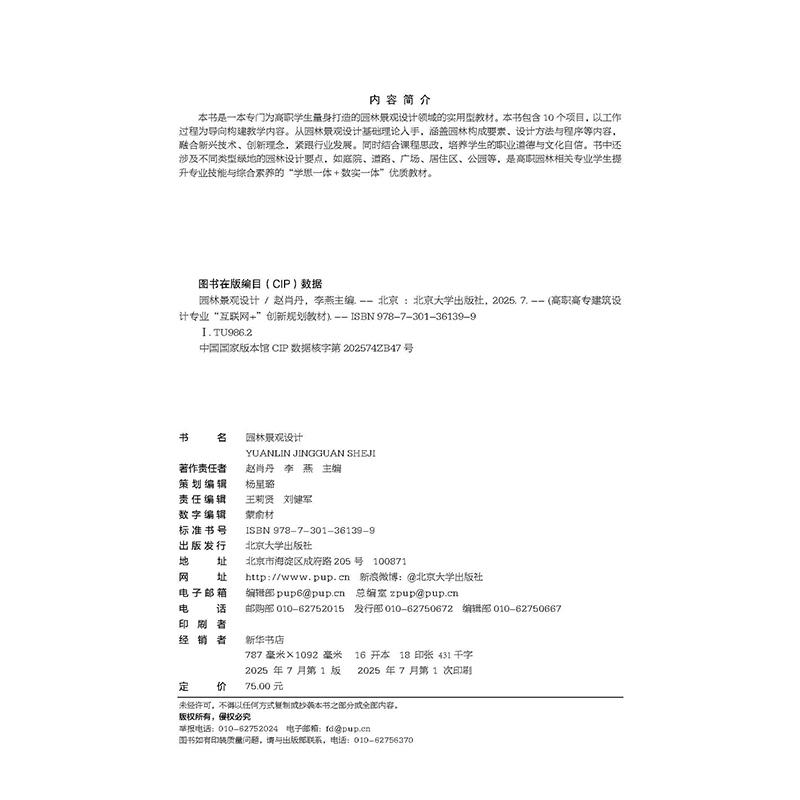 2025新书 北京大学出版 园林景观设计 李燕 社9787301361399 赵肖丹 正版