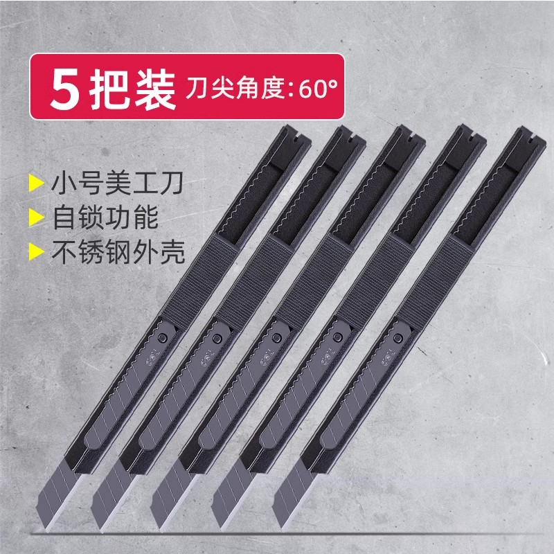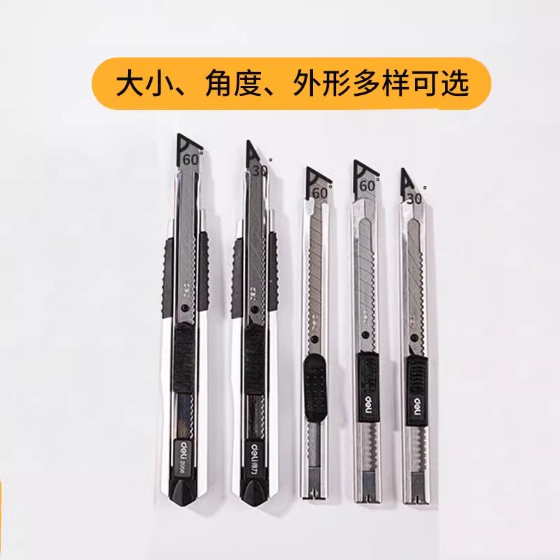 5把得力美工刀小号刀片手工刀小刀贴壁纸手工刀工业用30度不锈钢拆快递刀壁纸重型学生迷你裁纸刀美术生专用
