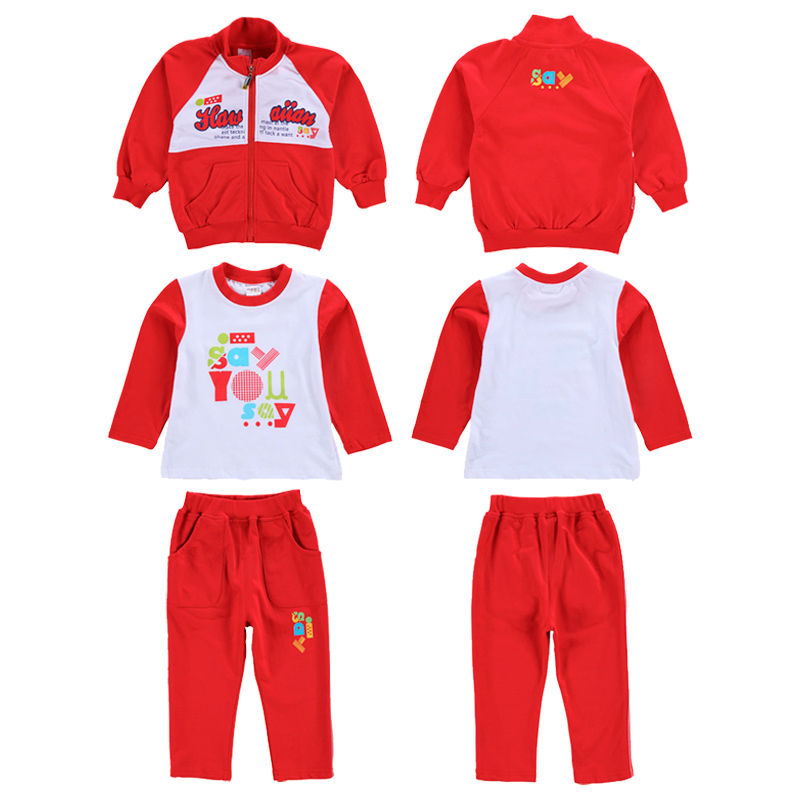 新年红卫衣运动套装 ER条纹撞色开衫 校园风运动服定制 明星同款