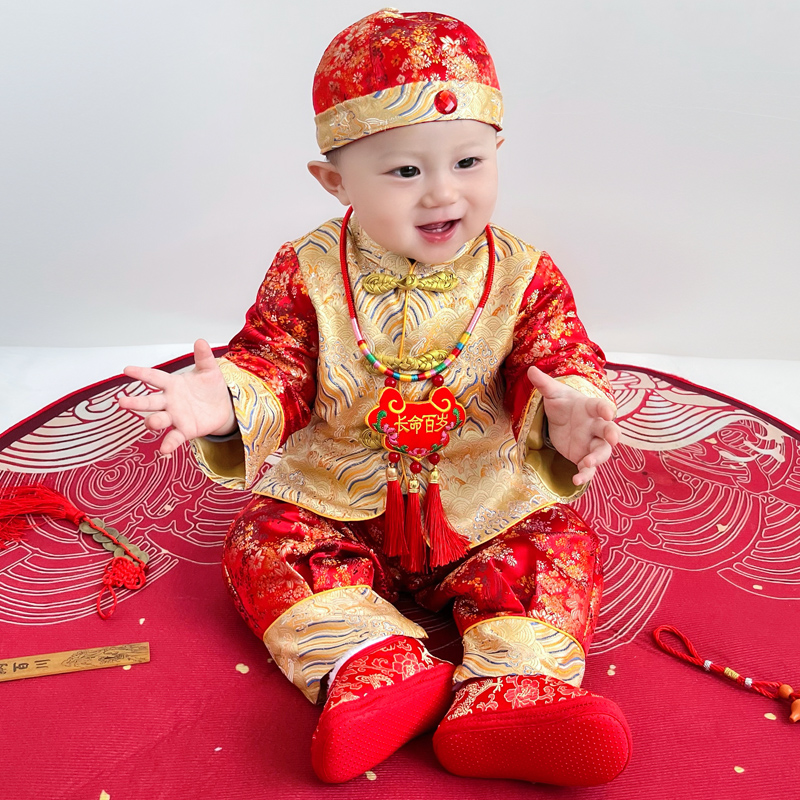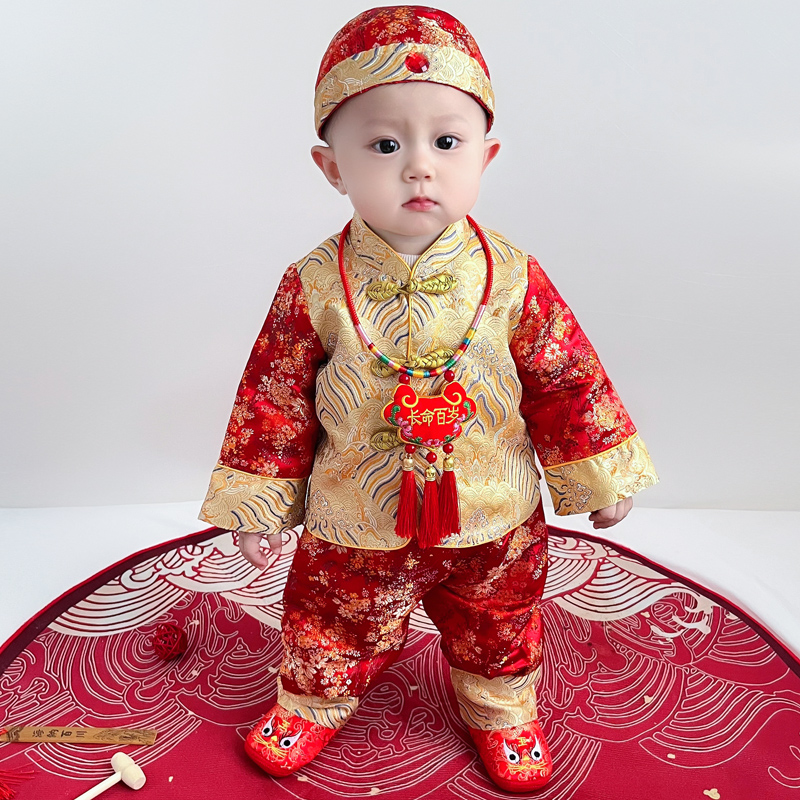 周岁礼服男宝宝春夏新款 婴儿百天一岁抓周生日宴会礼服中国风唐套
