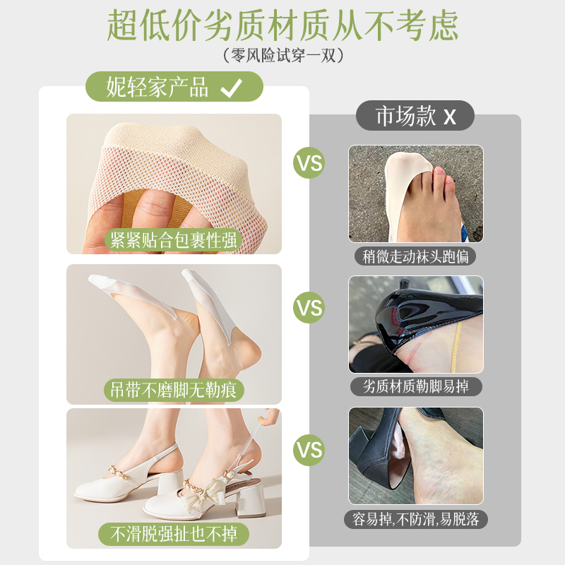 隐形袜女夏薄款 袜 冰丝防顶破浅口船袜棉质吸汗底防滑不掉跟高跟鞋