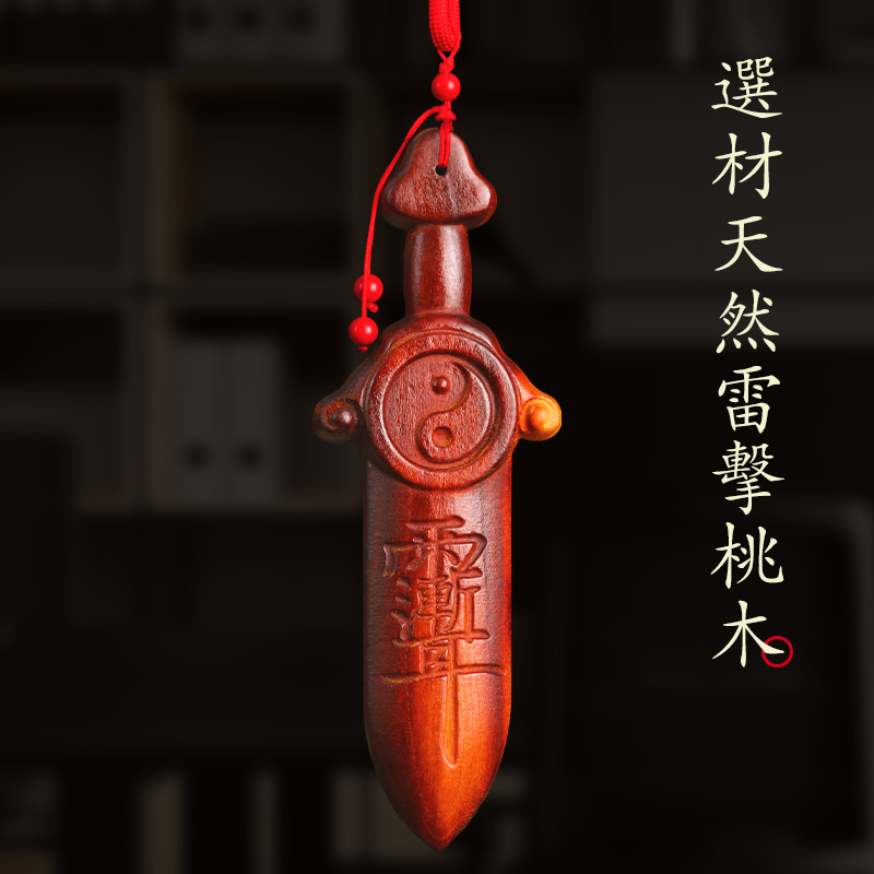 雷击桃木剑紫微讳剑挂件自然野生老桃木朱砂手工编织打磨车挂随身