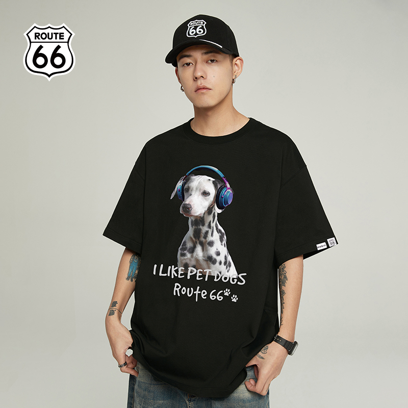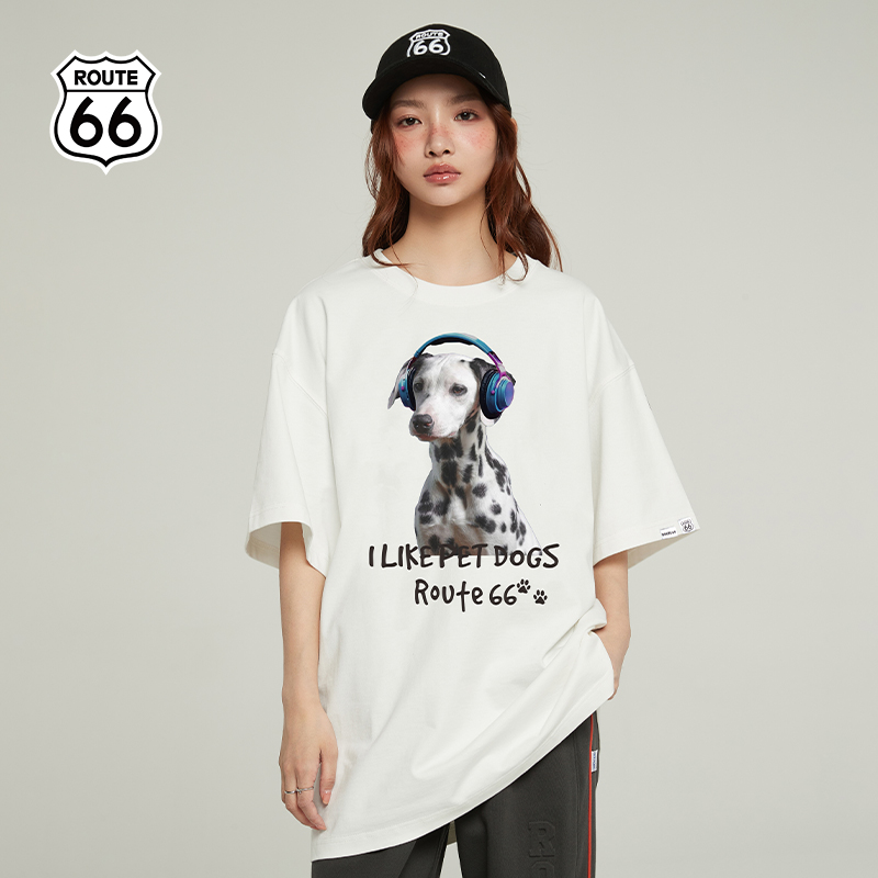 t恤上衣夏季 高街耳机斑点狗短袖 ROUTE66美式 男女同款 清仓价