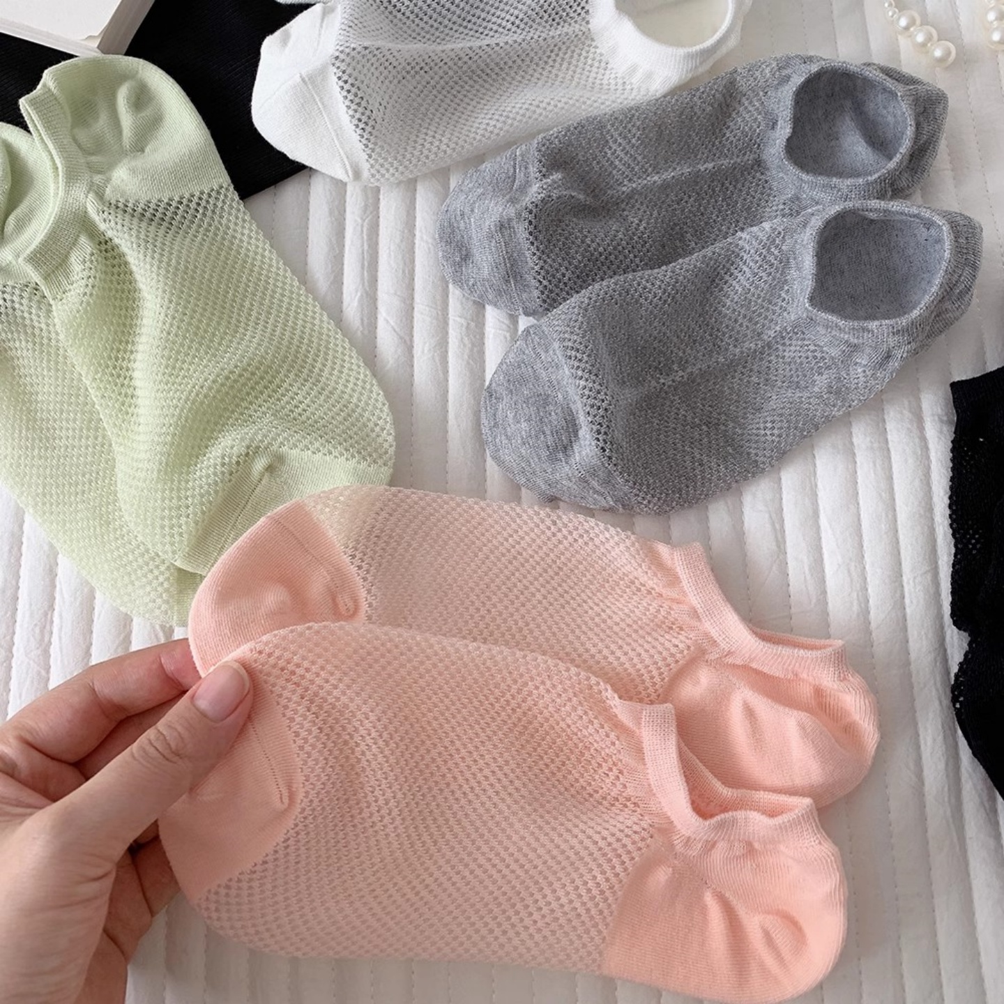 网眼袜子女短袜夏季 棉质浅口防滑不掉跟白色透气夏天隐形船袜 薄款