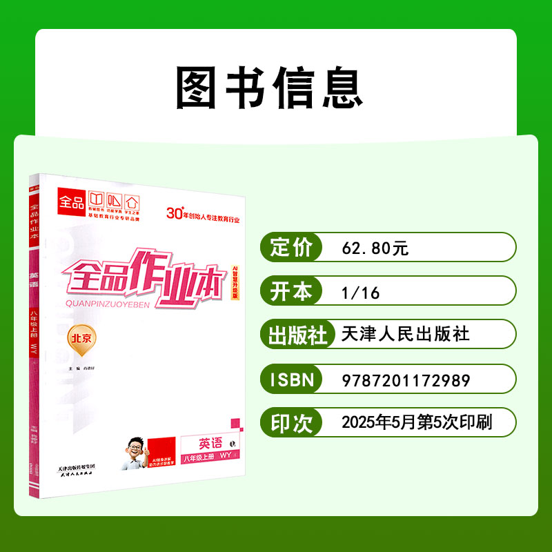 WY外研版 完型填空 阅读理解 检测试 八8年级 英语上册 必刷题 北京专版 2025秋 单词 全品作业本 初二 课后作业 教材同步练习册