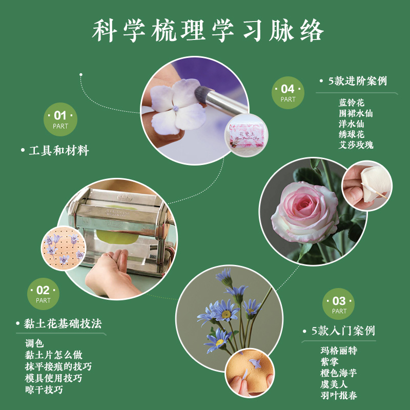 粘土教程书 黏土花手工制作指南 手工制作书籍 仿真花卉 diy 2024新书 调色方法和制作技法 造花记
