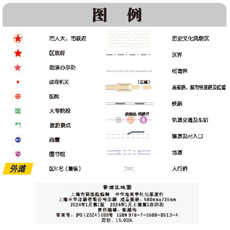 中华地图学社 地铁站景点学校医院商厦分布情况 上海市黄浦区地图新版 上海分区交通旅游便民出行指南
