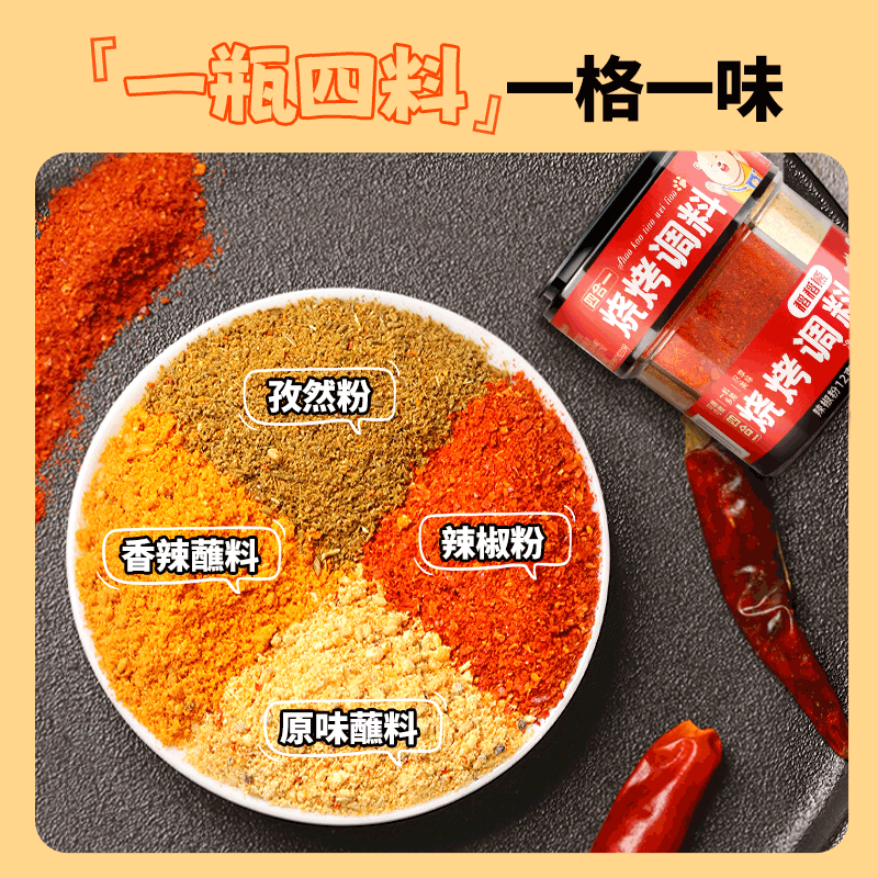 稻稻熊四合一烧烤调料韩式 3罐孜然粉辣椒粉干料碟子 烤肉蘸料63g