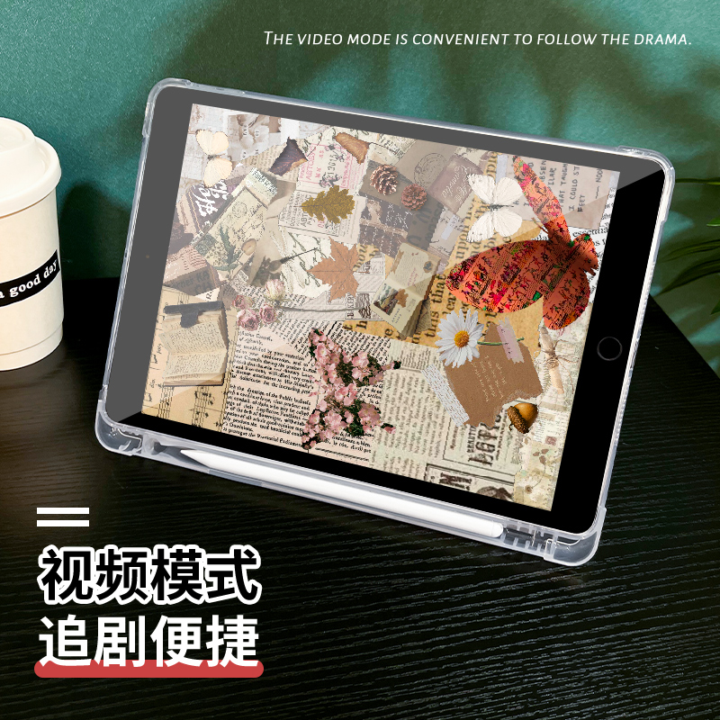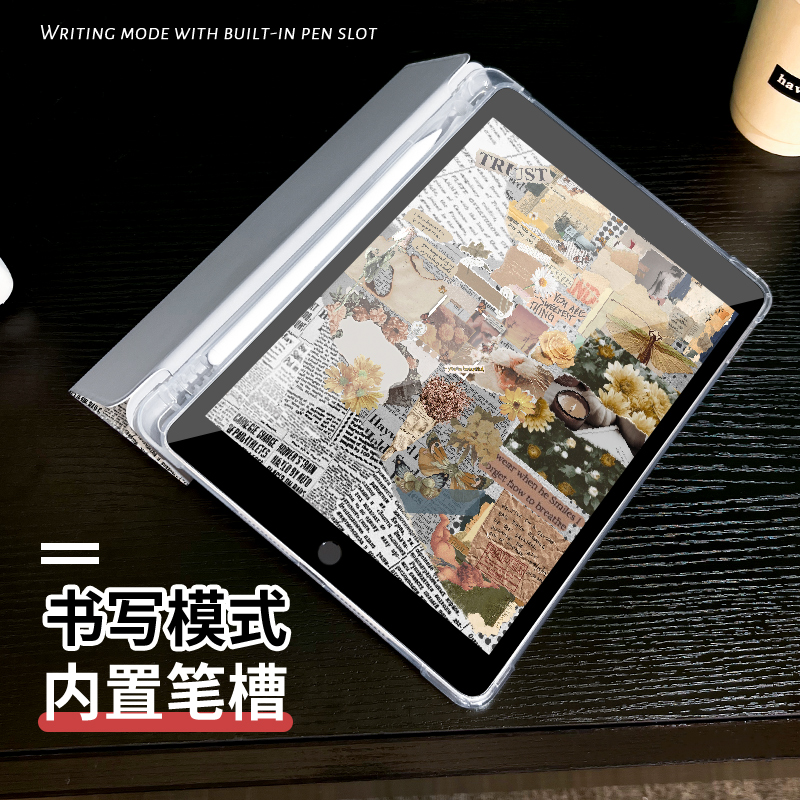 12.9寸笔槽女 3平板壳2025苹果第九代13英寸10代mini6三折硅胶ipadpro11 报纸拼贴适用于ipad10保护套air6
