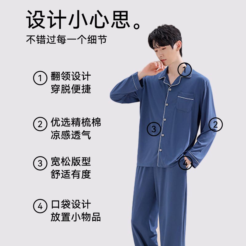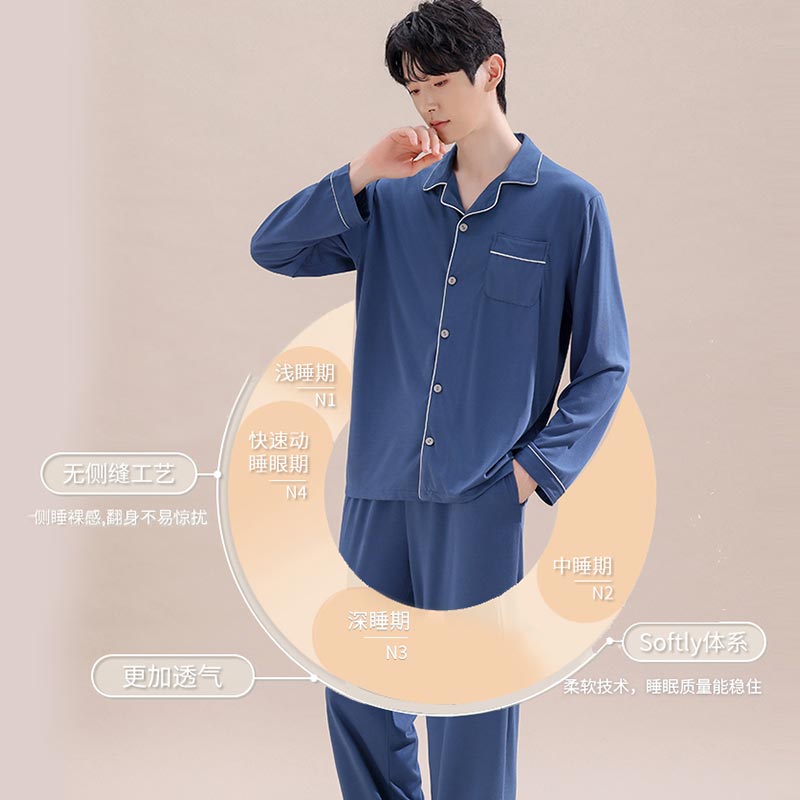长裤 长袖 纯色大码 休闲男士 罗蒙睡衣男纯棉夏季 家居服套装 2025新款