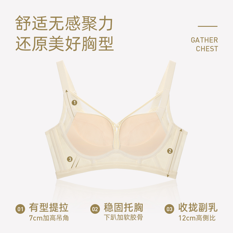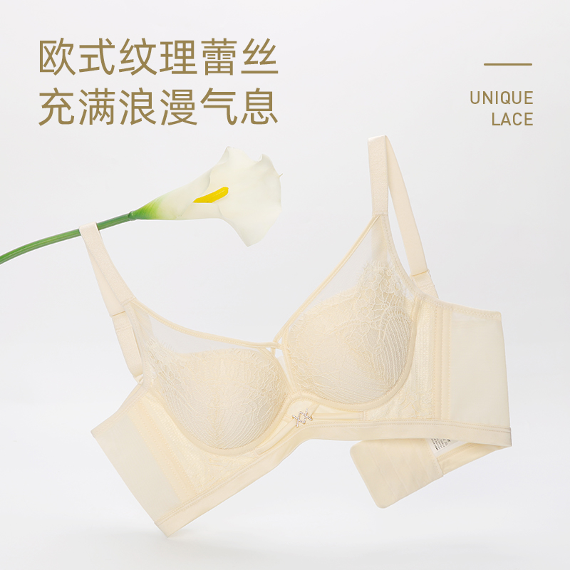 好奇蜜斯小胸聚拢内衣女薄显大无钢圈蕾丝文胸罩套装 防下垂夏 法式