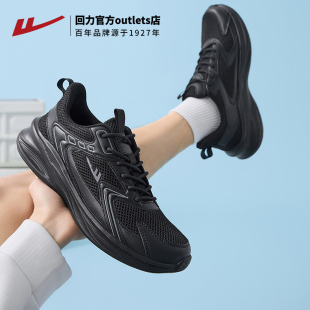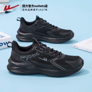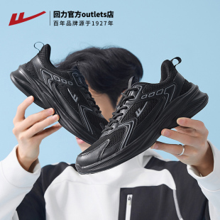 子百搭休闲软底运动鞋 回力男鞋 网面透气跑步黑色鞋 新款 男 2025夏季