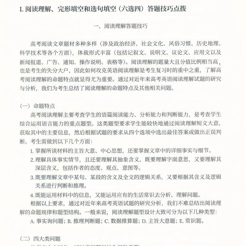 2026年高考英语阅读专项训练含答案高一高二高三适用阅读理解完形填空选句填空新高考英语真题高中一年两考新题型上海译文出版 社