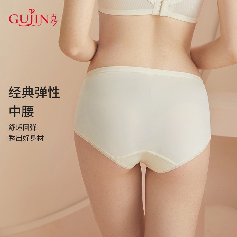 女士舒适中腰蕾丝棉裆弹力中腰三角内裤 女1P8001