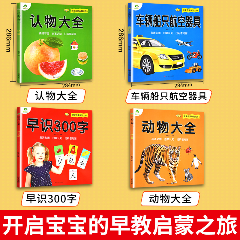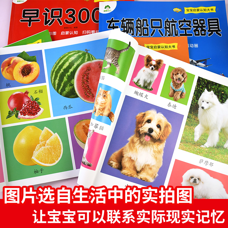 早教书0 可选宝宝启蒙认知大书早识300字 动物大全 车辆船只 3岁宝宝认知汽车彩色图书看图识物书婴儿宝宝书籍爱德少儿 认物大全