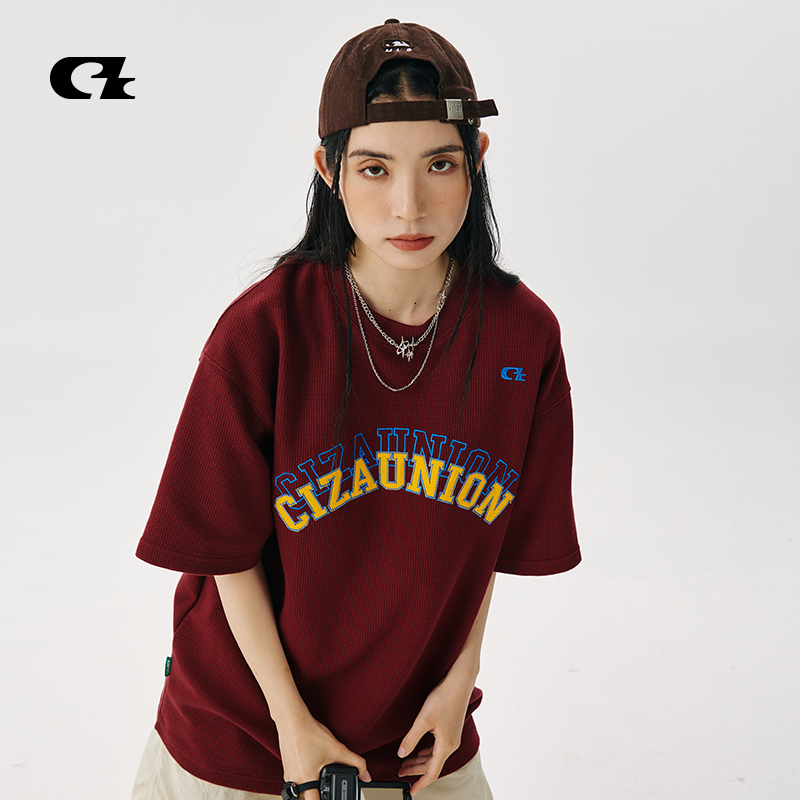 ciza国潮牌嘻哈刺绣情侣ins圆领宽松短袖 T恤男女青少年中性风半袖