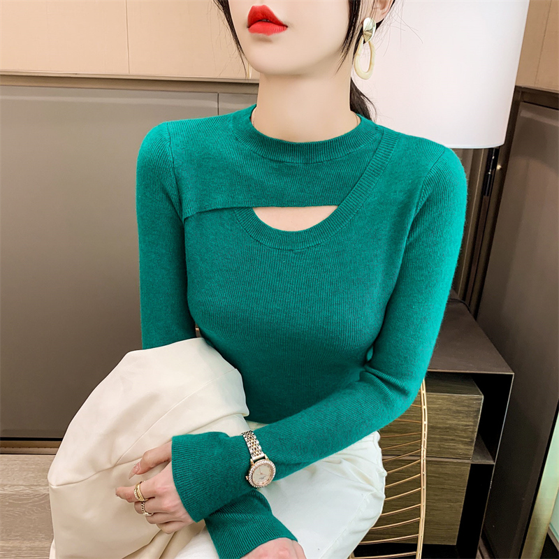显瘦性感别致女装 2025年早春新款 毛衣内搭修身 打底衫 潮 圆领针织衫