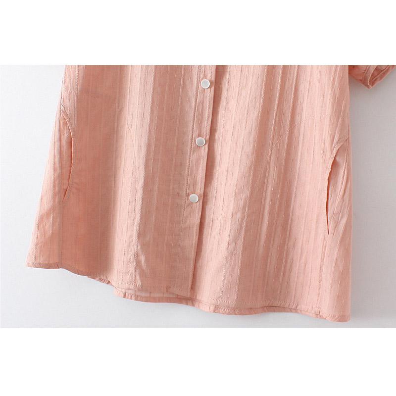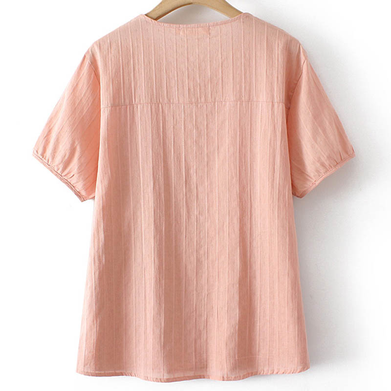 薄款 宽松洋气纯色衬衣棉麻半袖 胖mm夏装 衬衫 上衣女 短袖 加肥加大码
